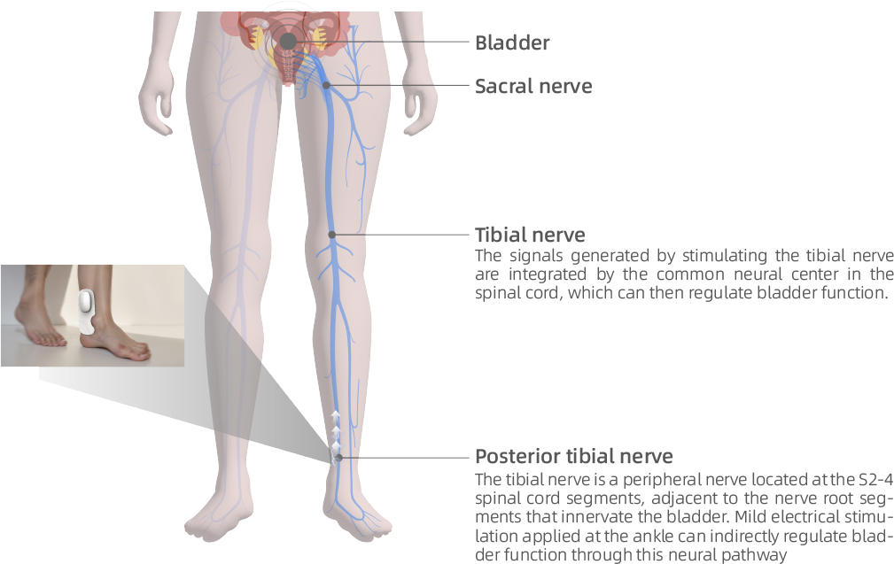 EaseFlow™ Patch (Non-invasive Low-frequency Tibial Nerve Stimulator) stimulates through weak electrical current